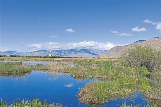 圖為水草豐美的拉魯濕地一角。記者 潘多 攝