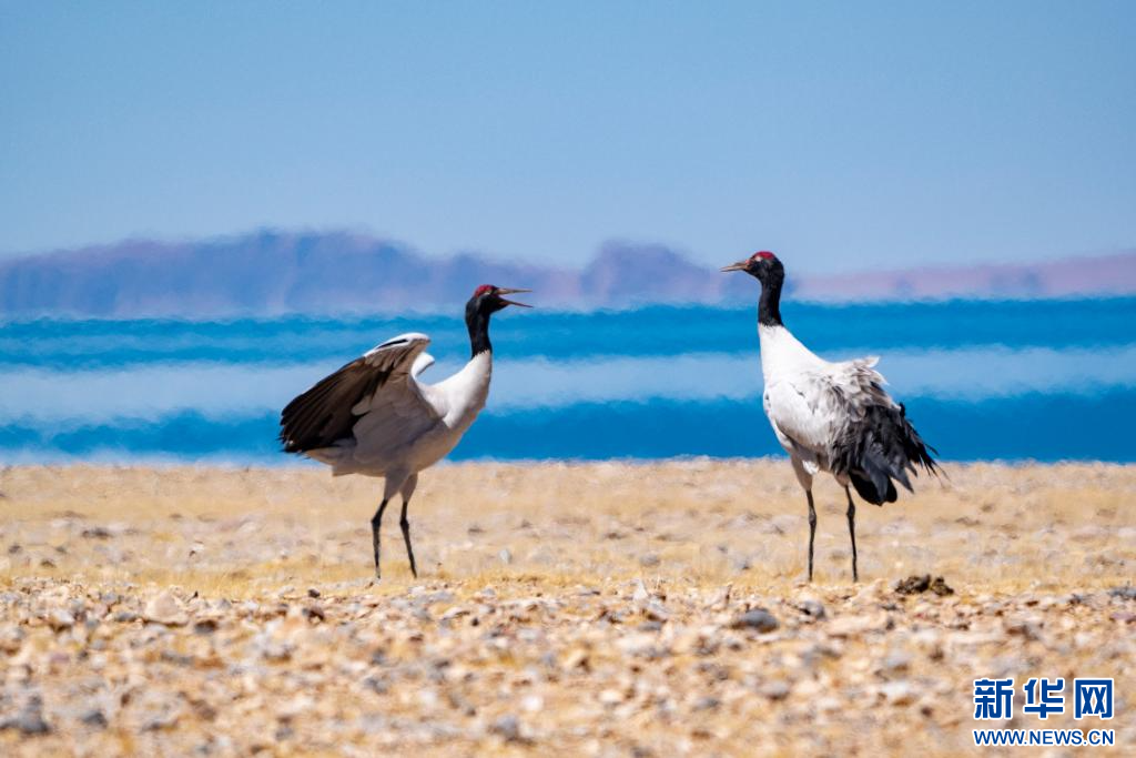 4月14日,在色林錯(cuò)國家級(jí)自然保護(hù)區(qū)拍攝的黑頸鶴。新華網(wǎng) 旦增努布 攝