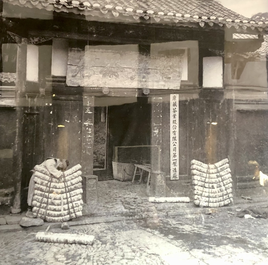 1939年,中國(guó)電影教育的開創(chuàng)者之一、時(shí)任金陵大學(xué)教師的孫明經(jīng)對(duì)西康進(jìn)行了系統(tǒng)的考察,也為姜家大院留下了珍貴的影像資料。他拍攝到當(dāng)時(shí)姜家大院大門口的情景:“裕興茶店”的匾額下,掛著“康藏茶葉股份有限公司第一制造廠”的木牌,大門兩邊各放著一背茶包,均為九條,左邊有一位女背夫,正在打捆茶包,整個(gè)茶包預(yù)估有200斤,而在當(dāng)時(shí),男背夫所要背負(fù)的重量要達(dá)到300斤左右。