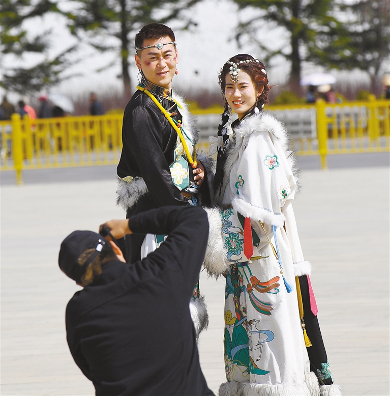 身著藏裝拍攝寫真的游客。記者 洛?!z