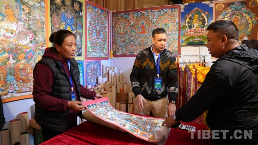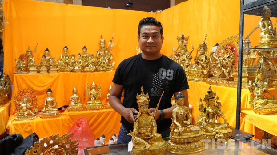 Bikram來(lái)自尼泊爾首都加德滿都,十年前來(lái)過(guò)拉薩,深深被這座城市所吸引,這次通過(guò)中外商品展銷會(huì)再次來(lái)到一直向往的拉薩,他非常開(kāi)心?!拔覀兡岵礌柕氖止に嚻吩谌澜绯雒?,這次我們從尼泊爾帶來(lái)的有唐卡、佛像、毛毯等,都是全手工制作的,希望在此次展銷會(huì)能夠得到西藏消費(fèi)者的支持與喜愛(ài)。”