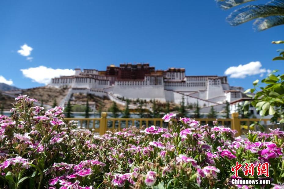 布達拉宮位于西藏自治區(qū)拉薩市紅山上,是一座古代宮堡式建筑群。布達拉宮先后被國務院公布為第一批全國重點文物保護單位,被聯(lián)合國教科文組織公布為世界遺產(chǎn)名錄。近日,高原入夏,布達拉宮周邊繁花盛開、綠柳成蔭,藍天白云下更顯秀麗。圖為5月28日,夏日鮮花與布達拉宮。