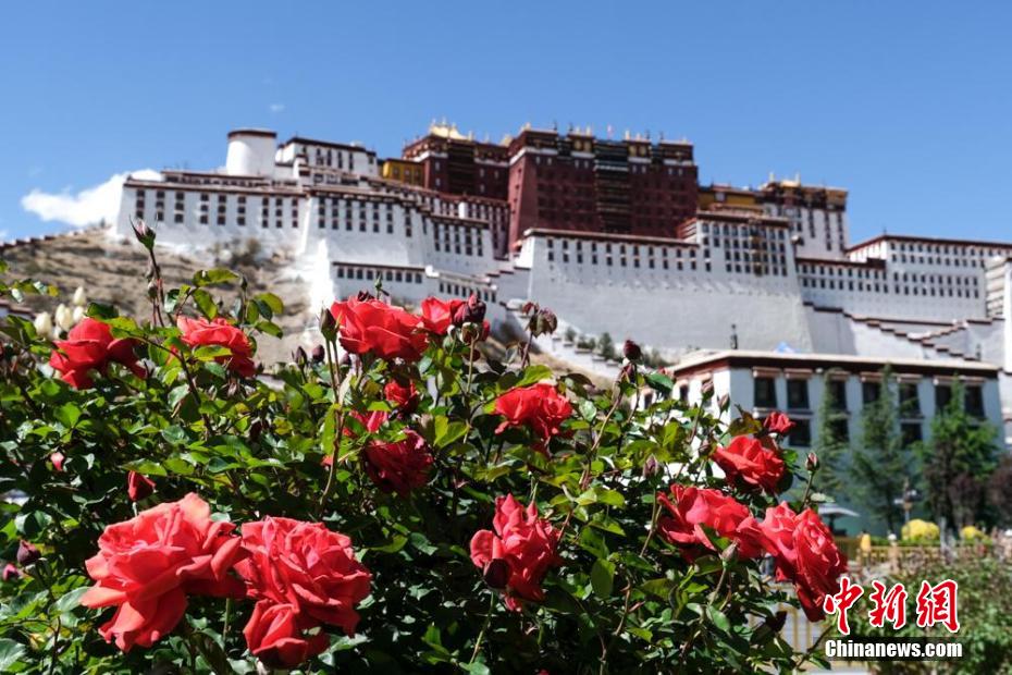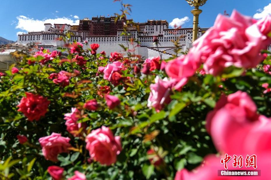 拉薩布達拉宮腳下綠化帶中盛開的月季。