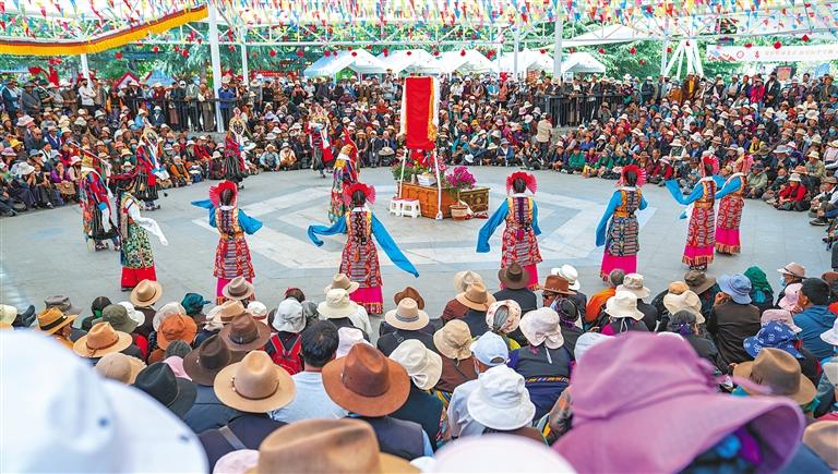 悠悠夏日,氣溫攀升,前往拉薩市宗角祿康公園消夏游玩成為不少市民和游客的選擇。6月9日,由拉薩市文化局主辦的2024年“藏戲演出季”活動(dòng)在宗角祿康公園啟動(dòng)。活動(dòng)為期5天,來自拉薩市各縣(區(qū))的5支民間藏戲團(tuán)隊(duì)將精彩呈現(xiàn)《朗薩雯蚌》《卓娃桑姆》等經(jīng)典傳統(tǒng)劇目。此外,活動(dòng)現(xiàn)場搭建了購買非遺產(chǎn)品的優(yōu)質(zhì)平臺——拉薩非遺好物集市,對藏香、陶瓷、書法、酸奶、馬具、糌粑、服飾等非遺好物進(jìn)行了展銷。