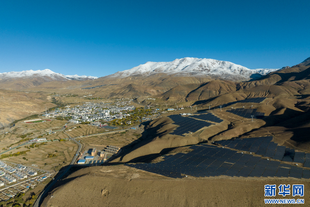 措美縣縣城附近的光伏電站(無人機照片)。新華網(wǎng) 旦增努布 攝
