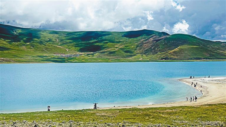 圖為游客在羊卓雍錯游玩。記者 格桑倫珠 攝