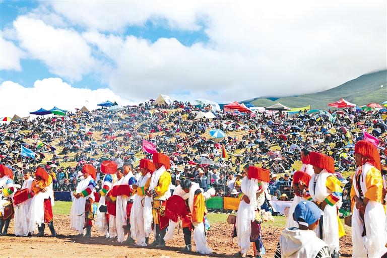 在邊交林鄉(xiāng)當(dāng)杰村“望果節(jié)”活動現(xiàn)場,隨著激昂的《運動員進(jìn)行曲》,當(dāng)杰村“平措林望果節(jié)”活動拉開帷幕,38名馬術(shù)運動員、38名射箭運動員在2萬多名觀眾的歡呼聲中邁入現(xiàn)場。