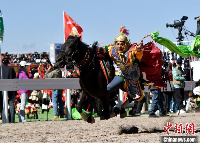8月10日,2024年那曲恰青賽馬節(jié)暨第三屆“鄉(xiāng)村振興 那曲奮進(jìn)”活動(dòng)開(kāi)幕式在那曲市賽馬場(chǎng)舉行,精彩的文藝歌舞、馬術(shù)表演等展示著羌塘草原上的無(wú)窮魅力和活力。圖為開(kāi)幕式上的馬術(shù)表演。中新社記者 李林 攝