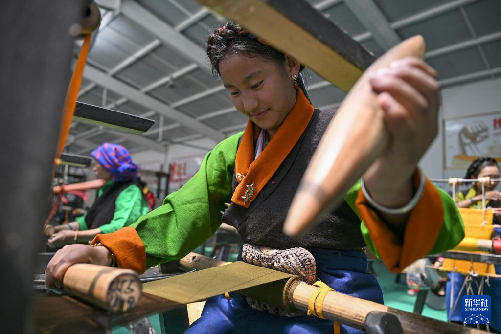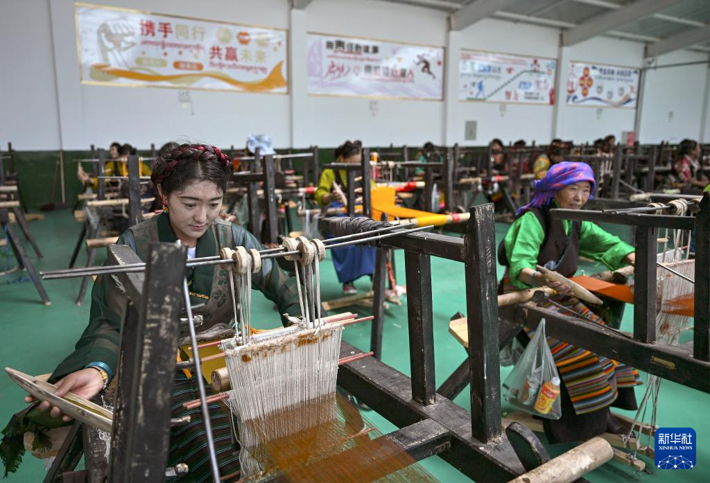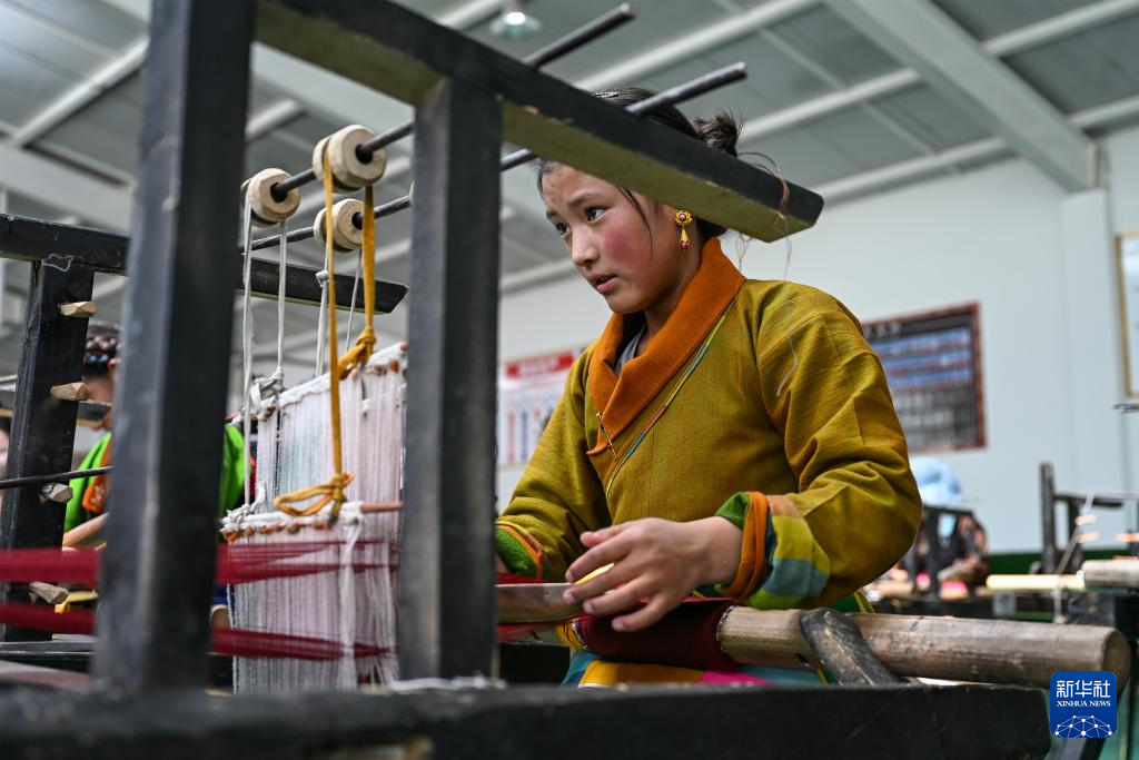 9月1日,在西藏日喀則市仁布縣特色產(chǎn)業(yè)孵化園,亞德細褐羊毛織品農(nóng)民專業(yè)合作社工作人員在車間里織布。新華社記者 孫瑞博 攝 ??