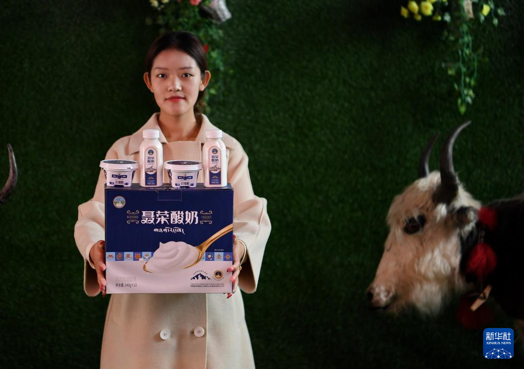 嘎確生態(tài)畜牧業(yè)發(fā)展有限責任公司的工作人員展示部分牛奶產(chǎn)品(8月24日攝)。新華社記者 張汝鋒 攝