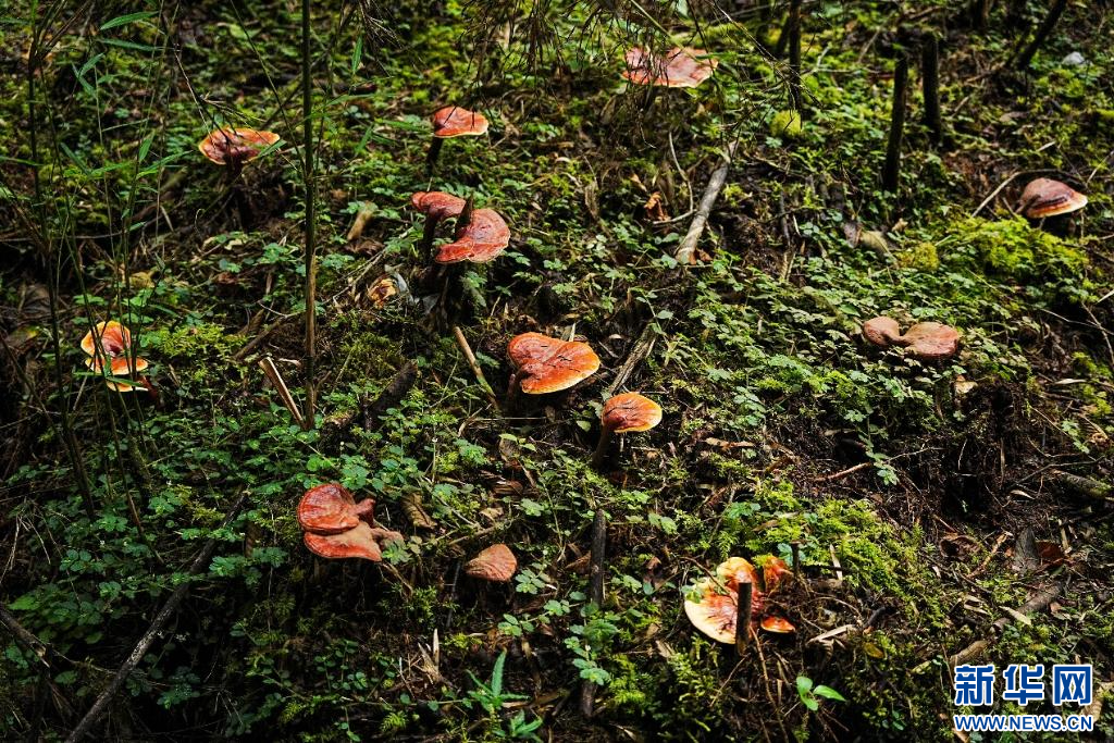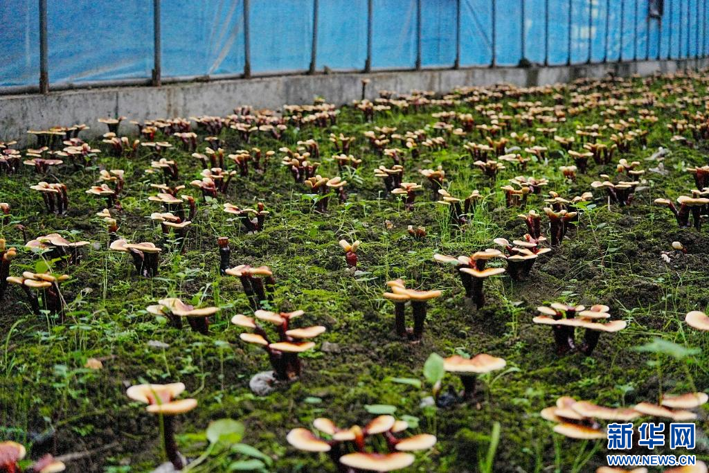 在林下生長的仿野生白肉靈芝(9月5日攝)。 新華網(wǎng)發(fā) 喬柯嵐 攝