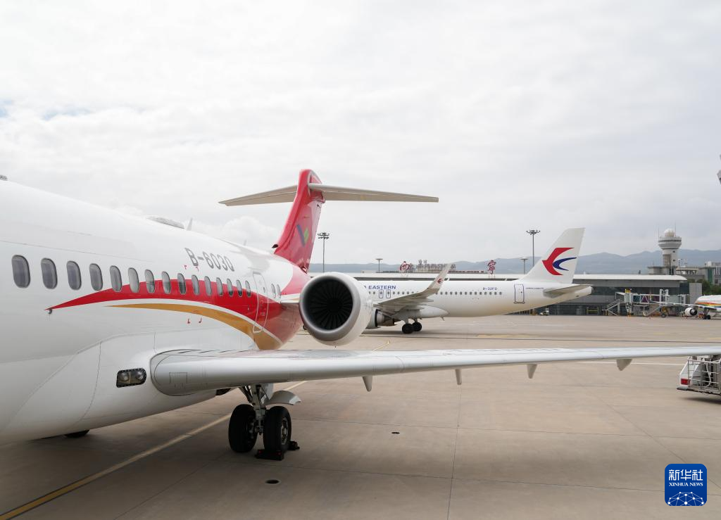 9月21日,國產(chǎn)商用飛機ARJ21停放在青海西寧曹家堡國際機場停機坪上。新華社記者 丁汀 攝