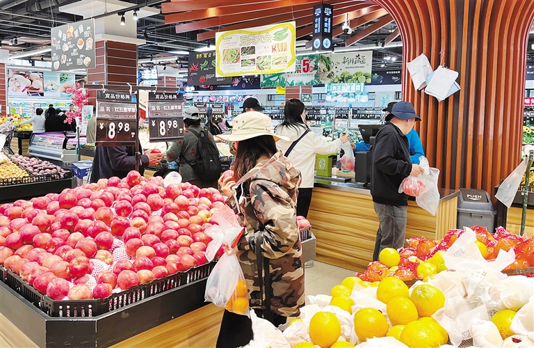 近日,拉薩市民在琳瑯滿目的超市食品區(qū)選購(gòu)蔬果。記者 旦增蘭澤 攝