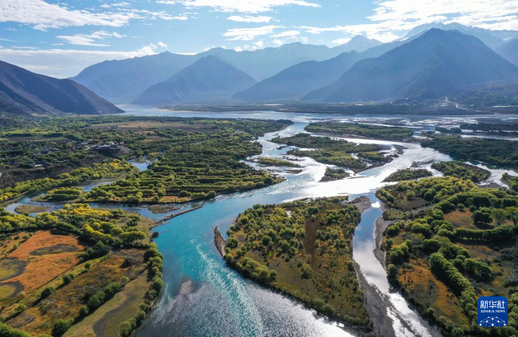 這是10月24日在西藏林芝雅尼國家濕地公園內(nèi)拍攝的尼洋河(無人機照片)。新華社記者 李賀 攝?