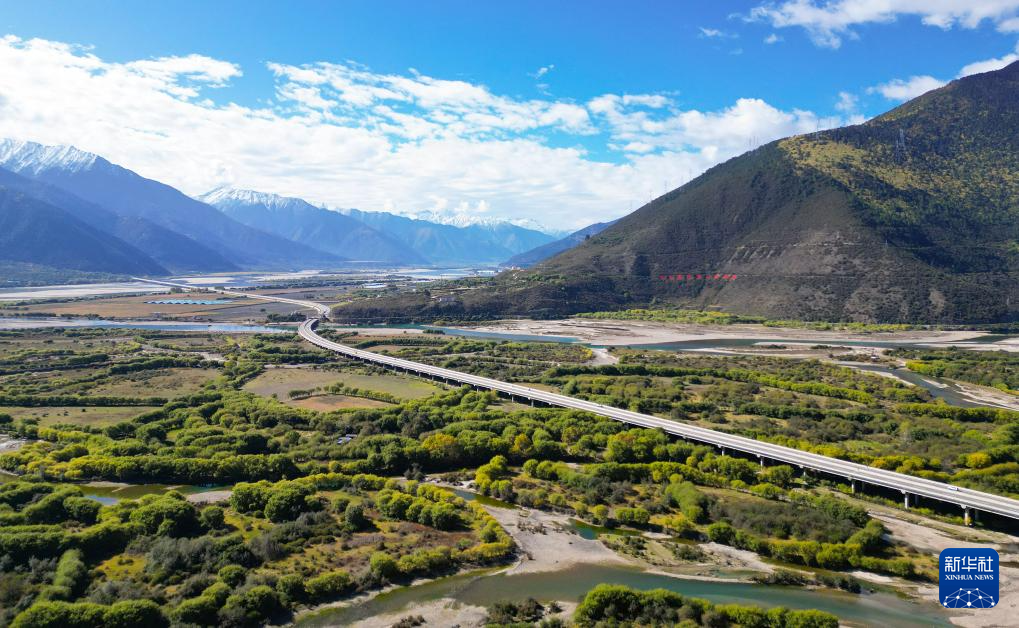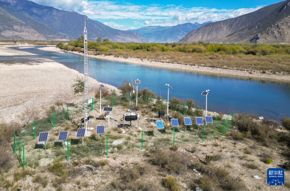 這是在林芝雅尼國家濕地公園尼洋河畔拍攝的生態(tài)監(jiān)測系統(tǒng)(10月24日攝,無人機照片)。新華社記者 劉天宇 攝??