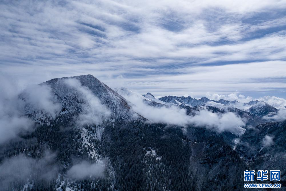 10月13日,在西藏昌都市八宿縣境內(nèi)川藏公路沿途拍攝的雪山(無人機(jī)照片)。新華網(wǎng) 旦增努布 攝