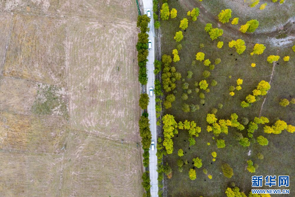 10月17日,在西藏昌都市卡若區(qū)境內(nèi)拍攝的鄉(xiāng)村道路(無人機(jī)照片)。新華網(wǎng) 旦增努布 攝