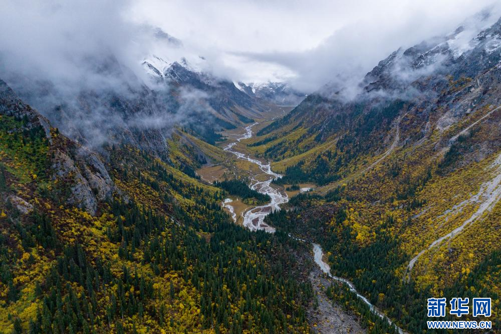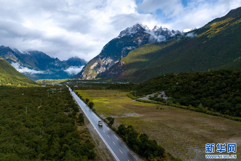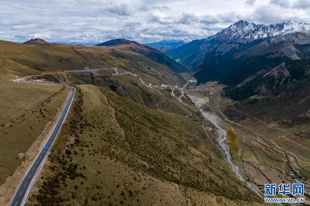 10月19日拍攝的川藏公路沿途風(fēng)景(無人機(jī)照片)。新華網(wǎng) 旦增努布 攝