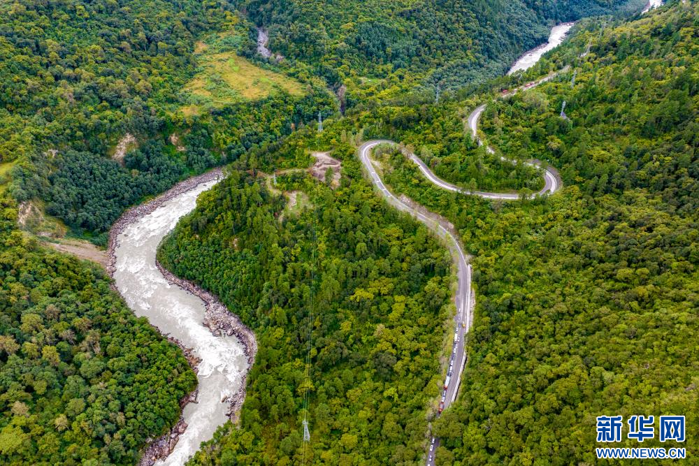 10月13日拍攝的川藏公路“怒江72拐”(無人機(jī)照片)。新華網(wǎng) 旦增努布 攝