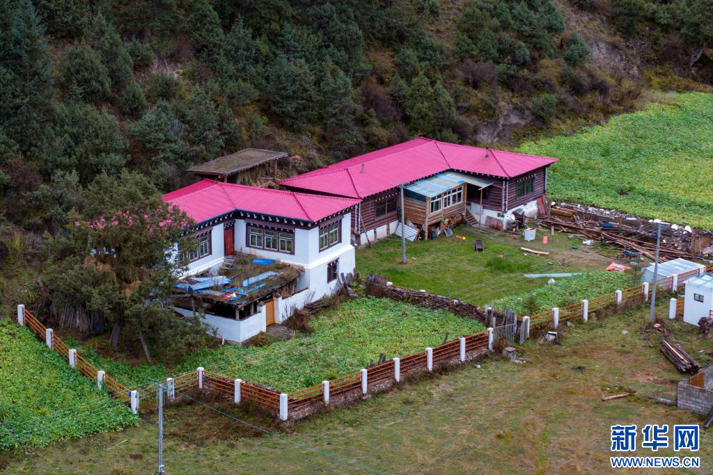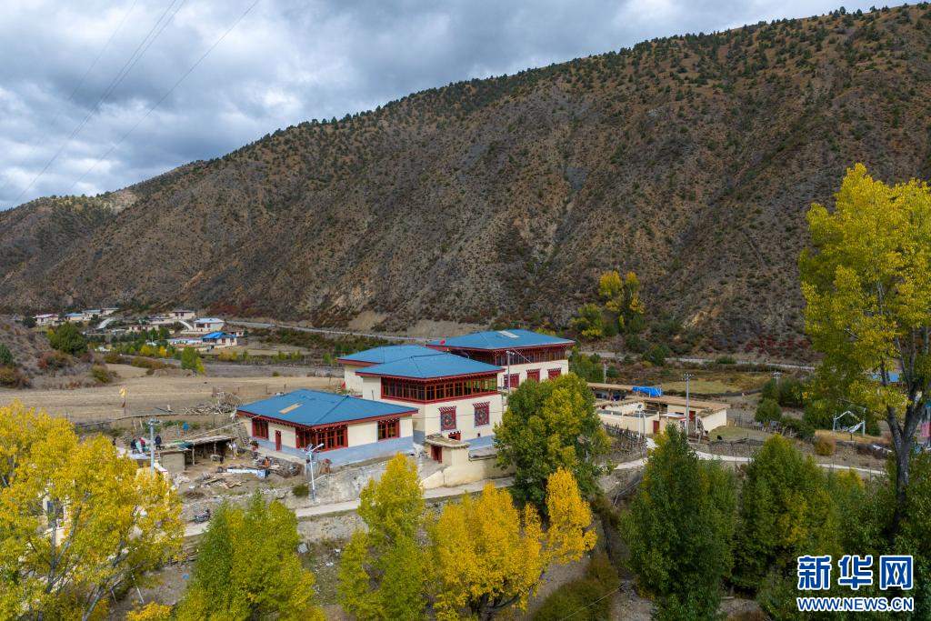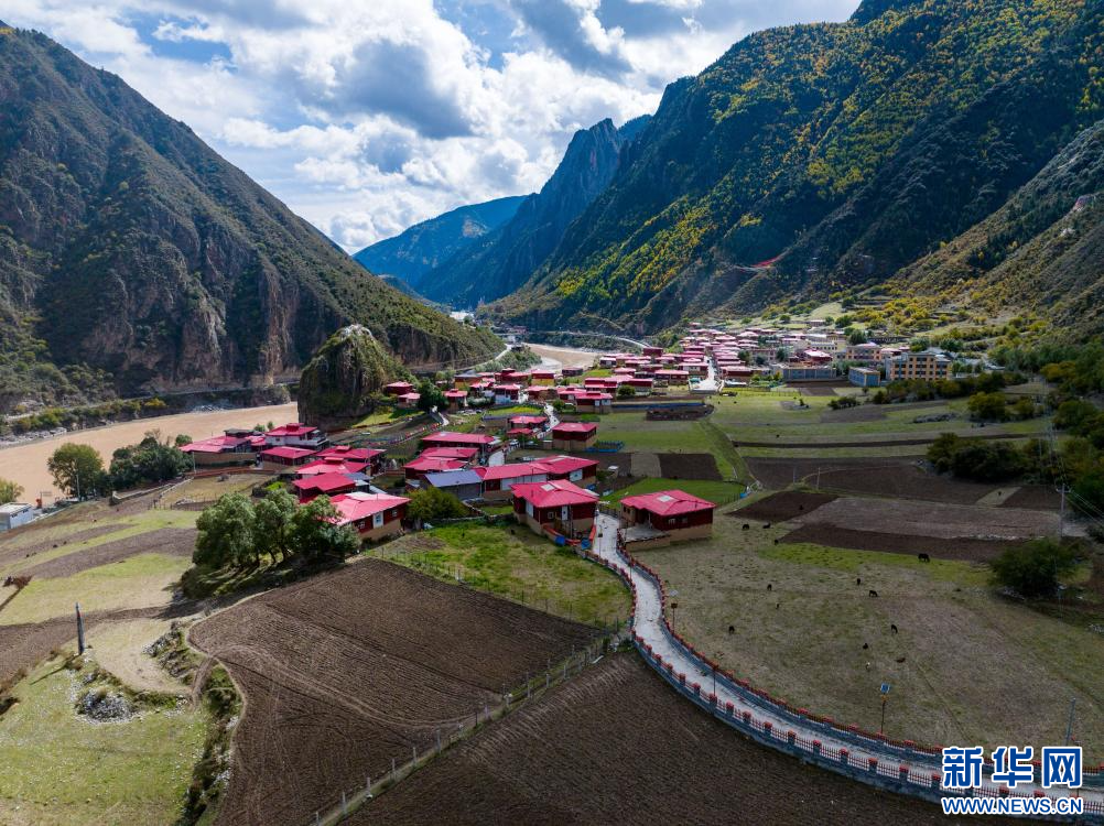 10月21日拍攝的“西藏解放第一村”昌都市江達縣崗托村村貌(無人機照片)。新華網 旦增努布 攝