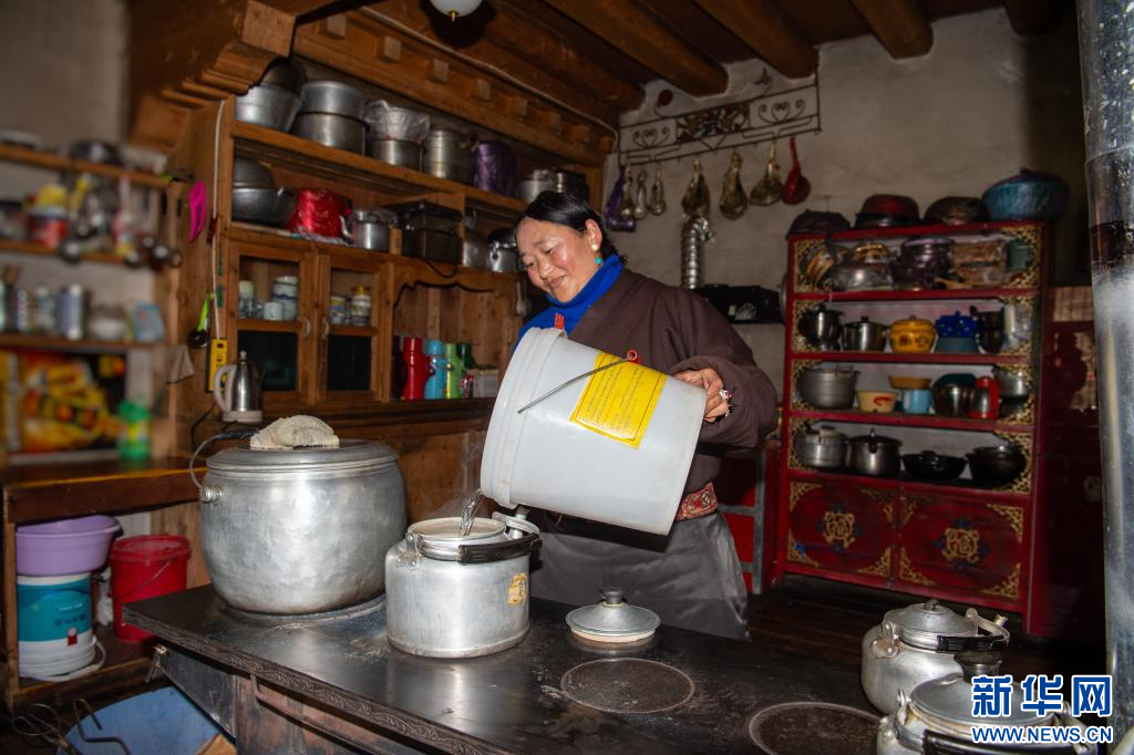 10月19日,昌都市卡若區(qū)妥壩鄉(xiāng)熱霍村村民白瑪拉姆在家里準備燒水。新華網 旦增努布 攝