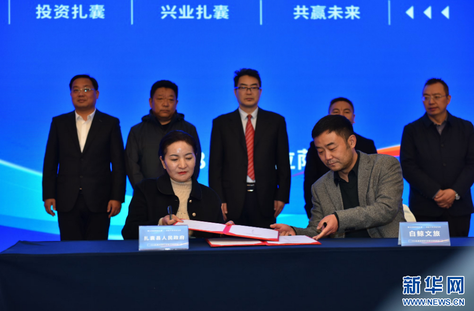 扎囊縣領(lǐng)導(dǎo)干部與意向落地企業(yè)在推介會(huì)現(xiàn)場簽約。(受訪對(duì)象供圖)