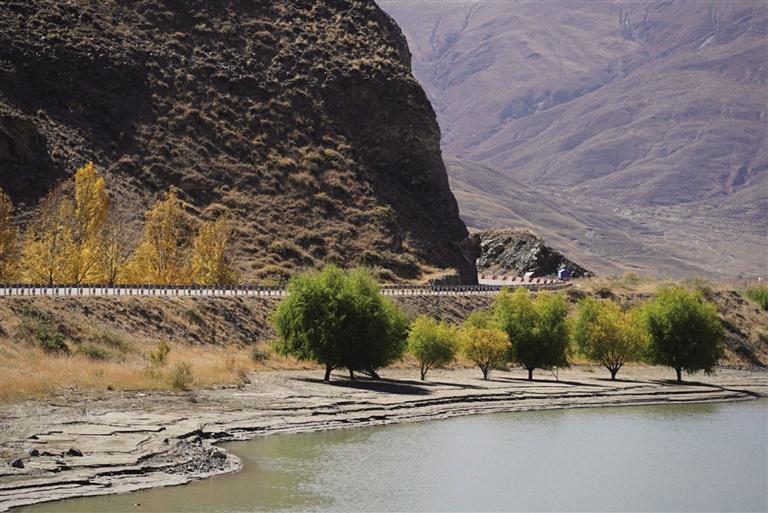 除了G318曲水段,G318達(dá)孜段也是賞景的絕美路線(xiàn)之一。沿著G318一路向東,達(dá)孜段沿線(xiàn)有金色池塘與巴嘎雪濕地,藍(lán)天白云、高聳的山峰和金色的樹(shù)林倒映在河塘中,在陽(yáng)光照射下,樹(shù)林和草地、河塘融為一體,造就了別樣的河谷風(fēng)光。