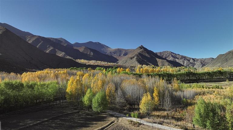 冬已至,趁西藏各地金韻斑斕、樹(shù)影婆娑之際,趕緊抓住這金黃色的“尾巴”。放下手機(jī),尋一僻靜之地,沉醉于這一灣寧?kù)o致遠(yuǎn)的山水景色中,迎著風(fēng),肆意享受一程山水的絕美。山河夕陽(yáng),溫暖長(zhǎng)空,賞景何須遠(yuǎn)游,G318曲水段、達(dá)孜段就有最美的風(fēng)景。(圖/記者 貢曲羅杰)