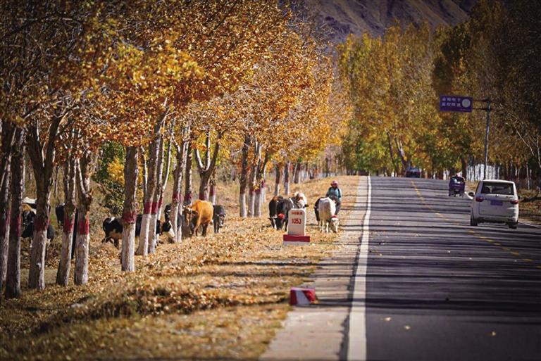 G318被稱(chēng)為“中國(guó)景觀(guān)大道”,沿途壯麗絕美的風(fēng)光令人心醉神迷。恰風(fēng)和日麗的一天,記者一行驅(qū)車(chē)前往G318曲水段與達(dá)孜段。一路層林盡染,落葉飄飛,如詩(shī)如畫(huà),美不勝收。