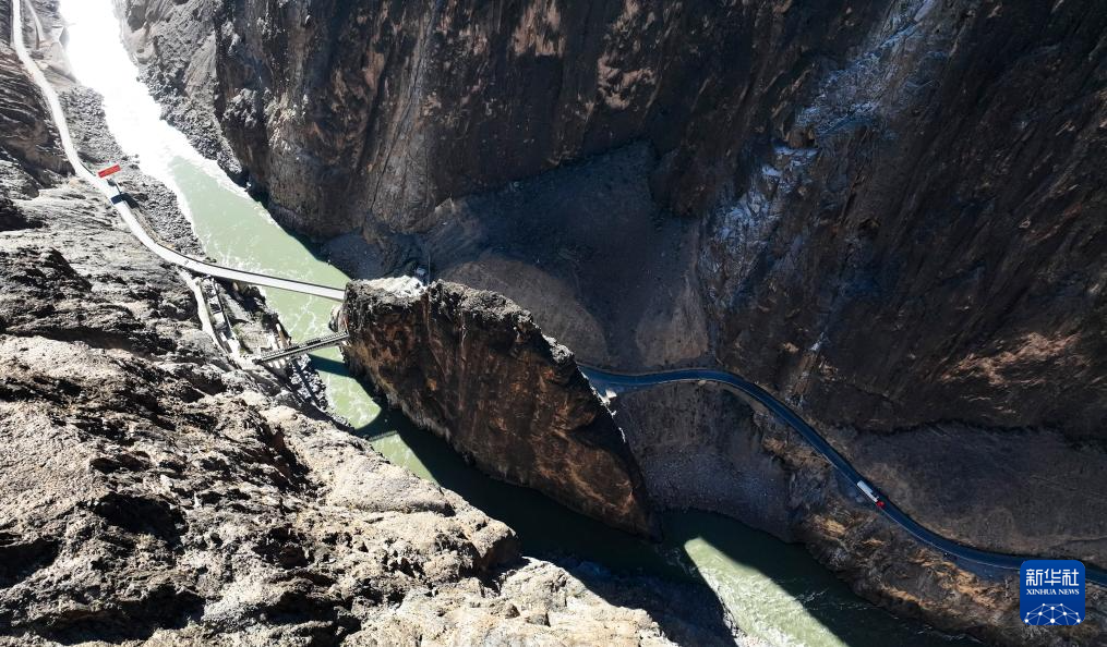 這是11月16日拍攝的位于西藏自治區(qū)昌都市八宿縣境內(nèi)的怒江大橋(無人機(jī)照片)新華社記者 楊帆 攝
