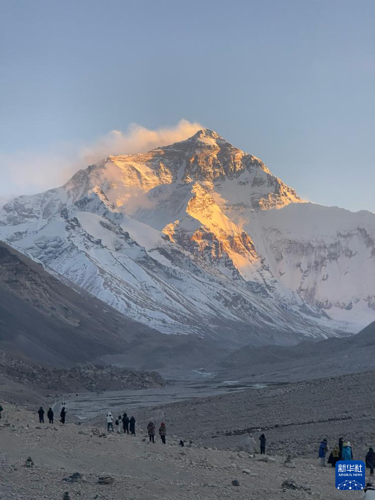 11月20日,游客在拍攝珠穆朗瑪峰日照金山景觀。新華社記者 邱星翔 攝 ??