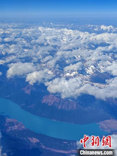 近日,中新網(wǎng)記者從云南昆明長水國際機(jī)場乘機(jī)前往西藏自治區(qū)拉薩市,飛機(jī)穿過橫斷山脈,抵達(dá)雪域高原。望向窗外,沿途依次看到了玉龍雪山、南迦巴瓦雪山以及遠(yuǎn)遠(yuǎn)的念青唐古拉雪山等,還有很多小新也不知道名字的雪山,可謂實現(xiàn)了“雪山自由”。圖為11月13日,從飛機(jī)上俯瞰西藏林芝巴松錯。記者 江飛波 攝