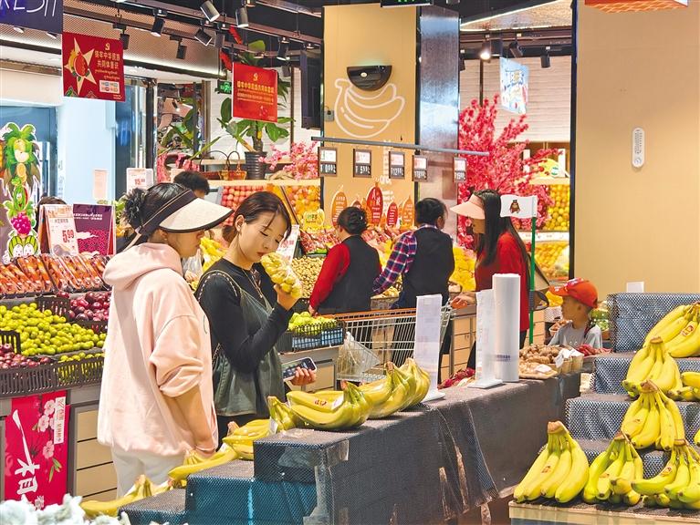 市民在巴宜區(qū)西屯超市選購新鮮蔬果。