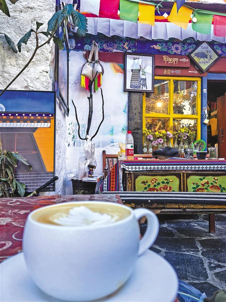 離開曲蘇大院,記者來到了另一個(gè)取景地—貢桑孜大院。與曲蘇大院相比,貢桑孜大院則顯得更加現(xiàn)代和時(shí)尚。走進(jìn)大院,就能聞到醇厚的咖啡香氣,院子的角落里有一家咖啡店,這家咖啡店是旦增格桑和朋友共同經(jīng)營(yíng)的。