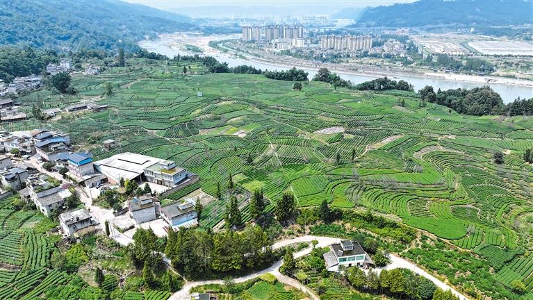 圖為鳥瞰雅安市雨城區(qū)草壩鎮(zhèn)的茶園。記者 張思雨 攝