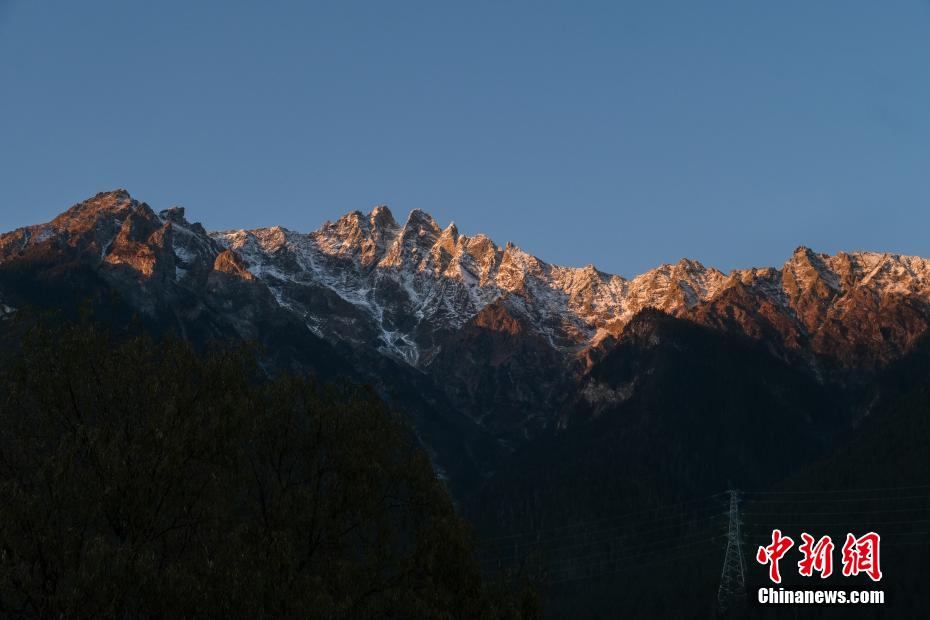 西藏自治區(qū)林芝市波密縣高山綿延、河流縱橫,擁有青藏高原最大的冰川聚集地,縣域境內(nèi)冰川超過(guò)2000座,被譽(yù)為“冰川之鄉(xiāng)”。圖為12月14日,金色的夕陽(yáng)照在波密縣城周邊的雪山頂上。中新社記者 江飛波 攝