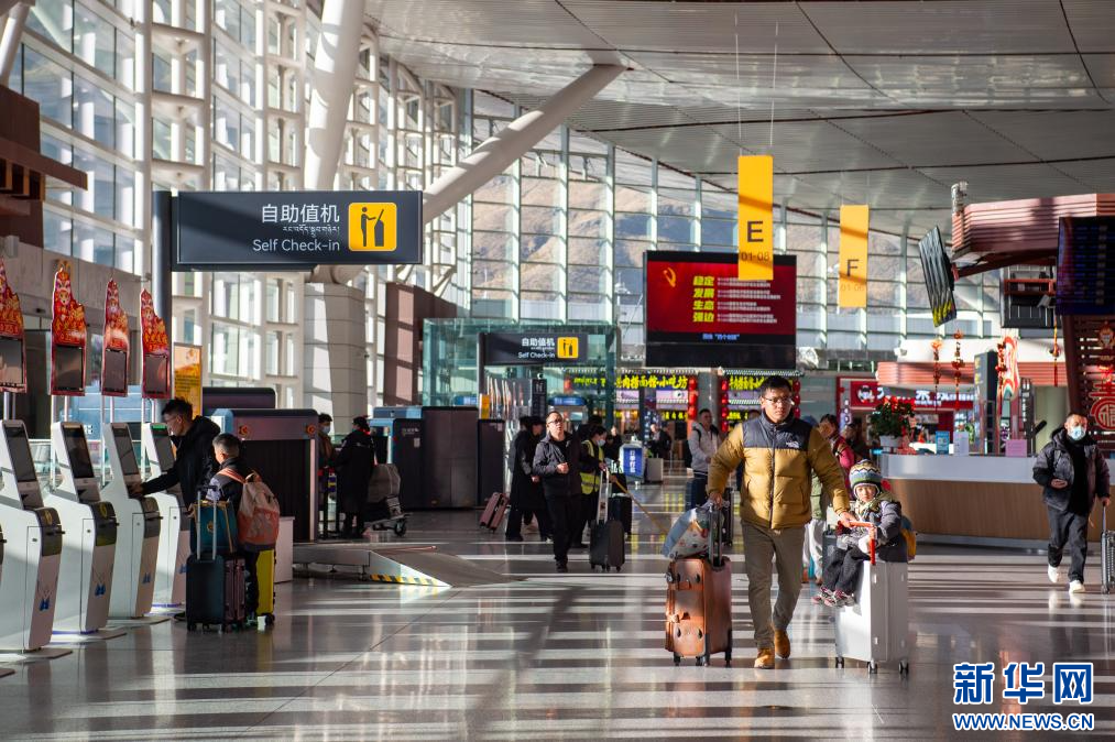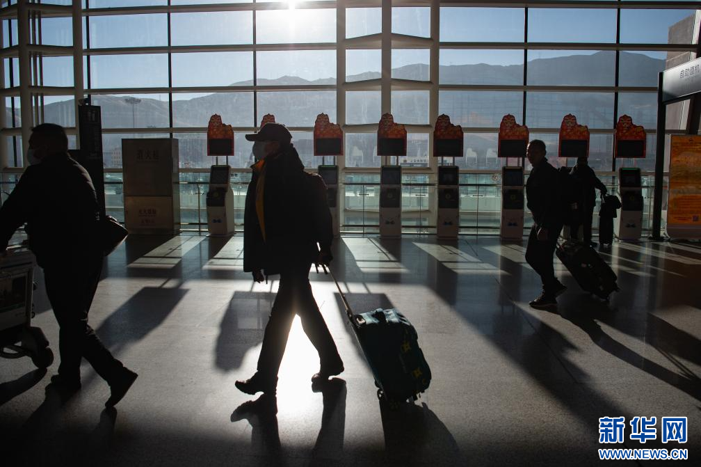 1月14日拍攝的拉薩貢嘎國際機場出發(fā)口。新華網(wǎng) 旦增努布 攝