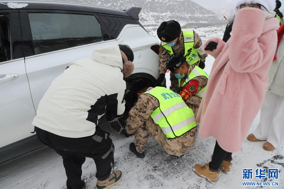 受災(zāi)路段平均海拔4800米,官兵采取“機械拋雪清表,除雪車跟進(jìn)破冰,撒布機攤鋪融雪劑”的作業(yè)方式快速展開救援。沿途打通10余個積雪路段,以最快的速度幫助受困人員脫離困境,很多官兵自覺把身上的外套大衣披在群眾身上,幫他們保暖驅(qū)寒,還為他們分發(fā)熱食熱飲;隨隊軍醫(yī)耐心安撫受困群眾情緒,檢查傷病員情況,防止因身體消耗較大引發(fā)高原病。