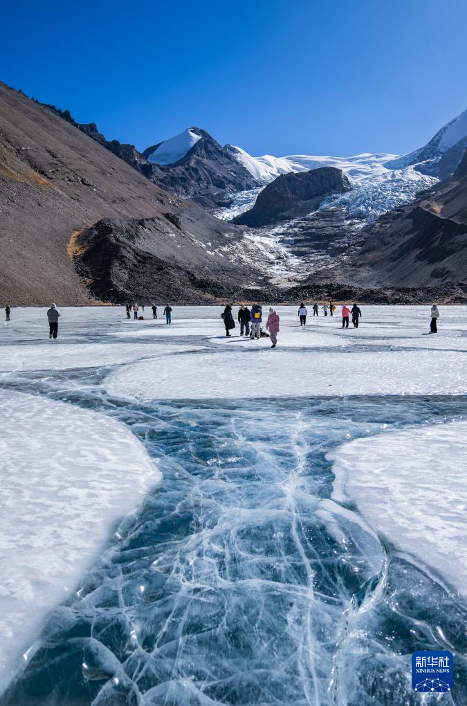 恰央錯(cuò)位于西藏自治區(qū)山南市浪卡子縣境內(nèi),湖泊終年碧藍(lán)澄澈。冬季,恰央錯(cuò)成為游客在西藏的冬游“新寵”,瑰麗獨(dú)特的藍(lán)冰景觀,吸引大批游客前來(lái)打卡游玩。 ??