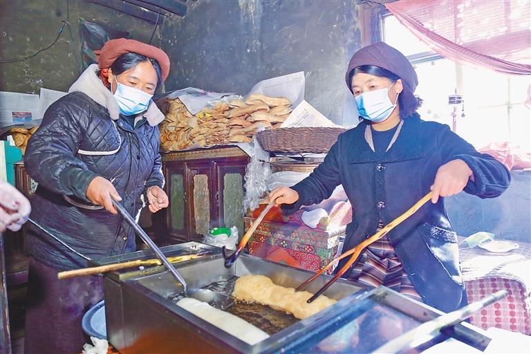 旦索朗一家,在每年藏歷新年前夕,都會(huì)開(kāi)啟一年中最為繁忙的時(shí)光——經(jīng)營(yíng)“卡賽”生意。旦索朗回憶往昔,感慨萬(wàn)千:“小時(shí)候過(guò)年,炸‘卡賽’是家家戶戶的頭等大事,整個(gè)村子都彌漫著誘人的香氣,那是新年專屬的味道。如今,時(shí)代在變遷,人們的生活方式也發(fā)生了改變,越來(lái)越多的人選擇購(gòu)買成品‘卡賽’,這既契合了快節(jié)奏的現(xiàn)代生活,也為我們提供了發(fā)展的機(jī)遇。我們經(jīng)營(yíng)‘卡賽’生意已有6年,這期間,靠著誠(chéng)信經(jīng)營(yíng)和對(duì)高品質(zhì)的堅(jiān)守,生意蒸蒸日上,還帶動(dòng)了6名村民共同增收,大家一起用雙手創(chuàng)造美好生活?!?/p>