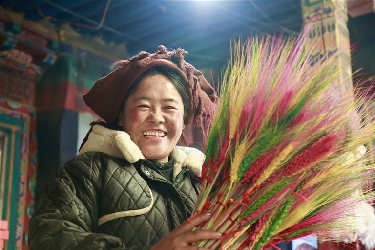 村民正在整理新年必備的年貨青稞麥穗。