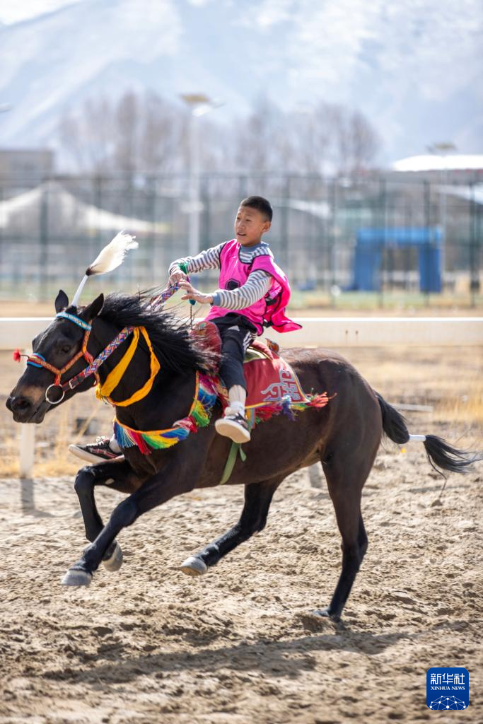 3月2日,馬術(shù)隊員在表演傳統(tǒng)馬術(shù)項目。新華社記者 晉美多吉 攝??
