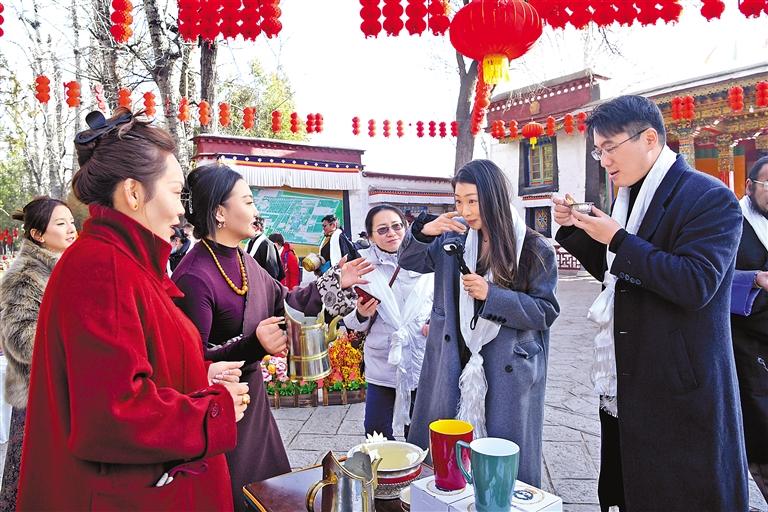 ?。ㄏ罗D(zhuǎn)第二版)(緊接第一版) 來自西安的曹女士剛體驗(yàn)完青稞酒又被工作人員遞上來的精美文創(chuàng)禮品吸引了眼球。她感嘆:“來這過藏歷新年,既能感受傳統(tǒng)藏歷新年的民俗活動(dòng),又能把藏文化帶回家,這樣的新年太有意義了!”