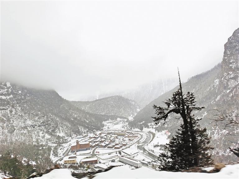 傍晚,翻過(guò)海拔5000多米的恰拉山口,經(jīng)過(guò)白雪覆蓋的草原,旅游團(tuán)一頭扎進(jìn)云霧籠罩著的日拉雪山深處。濃重的霧氣中,雪花飛舞,松林密布,天地之間只剩黑白兩種顏色。