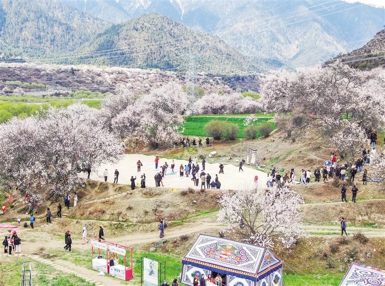 東風(fēng)吹皺尼洋河的綠波,桃花粉黛染遍藏東南的山坡。4月3日,為期一個月的林芝第二十二屆桃花旅游文化節(jié)如約而至,吸引五湖四海的游客踏春而來。林芝市以花為媒,精心籌備,將“寵愛游客”這條主線貫穿始終,動員全市各縣(市、區(qū))各界力量,精心推出花車巡游、“桃花仙子”評選、大峽谷賞花、非遺打鐵花、書畫聯(lián)展、無人機(jī)表演、“你好桃花”音樂嘉年華、特色產(chǎn)品展銷、“春分桃夭”免費(fèi)美食體驗等累計40余項精彩活動,涵蓋“吃喝玩樂游購?qiáng)省钡扔慰团d趣所及的方方面面,主打一個賞花游園的氛圍感、熱鬧勁兒,讓廣大游客來到林芝、愛上林芝,傳遞林芝的美麗、感受林芝人民的熱情。圖片均由 劉楓 謝筱純 攝