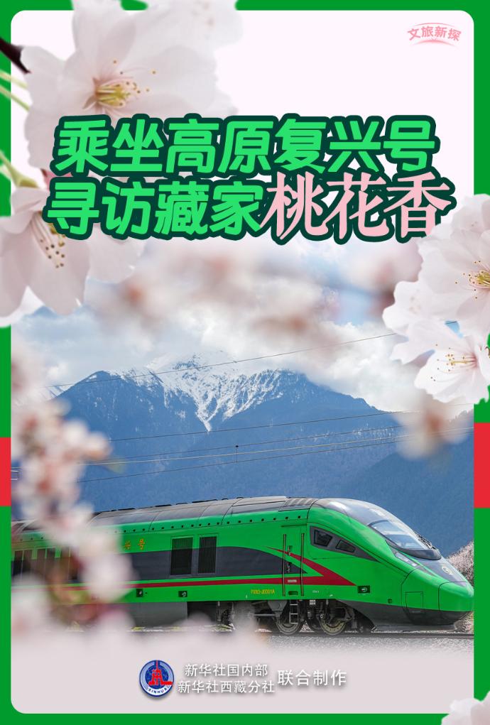 春日清晨,C881次高原復(fù)興號(hào)動(dòng)車(chē)組沿著拉林鐵路穿行于雪山峽谷之間時(shí),可以看到窗外的野桃花如粉色云霞般漫山綻放。車(chē)廂內(nèi),藏族阿媽與背著相機(jī)的旅人一同望向窗外,桃花遍野,雪山迎光。