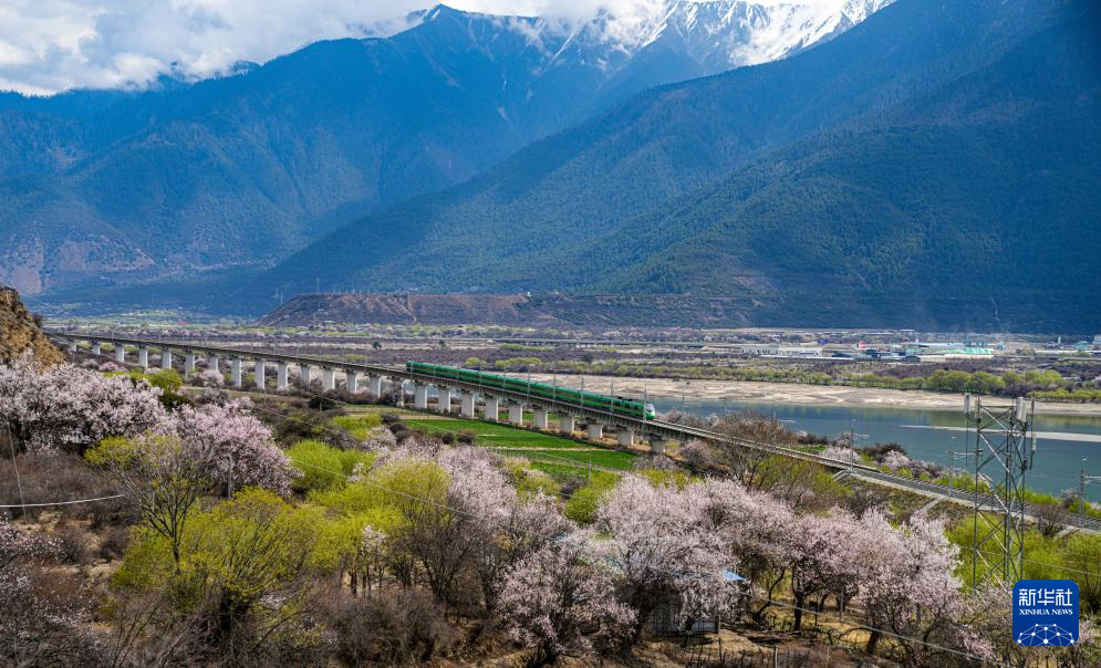 透過(guò)車(chē)窗,拉林鐵路沿線的風(fēng)景長(zhǎng)卷徐徐展開(kāi)。列車(chē)從拉薩出發(fā),首先映入眼簾的是連綿起伏的雪山,如銀色巨龍蜿蜒而行,與初綻的桃花交相輝映。
