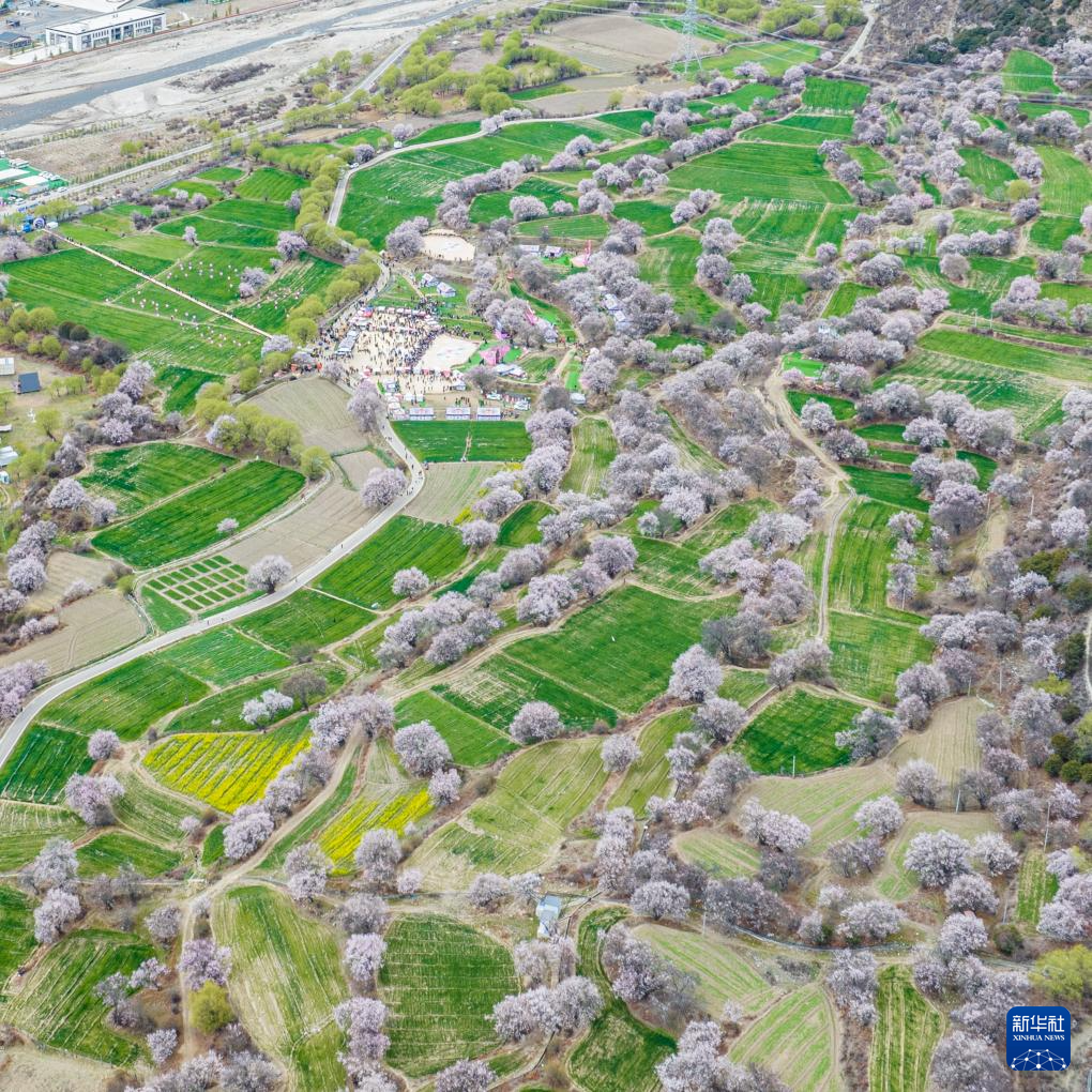這是林芝第二十二屆桃花旅游文化節(jié)巴宜區(qū)分會(huì)場(chǎng)所在地朵當(dāng)村(無(wú)人機(jī)照片)。新華社記者 丁增尼達(dá) 攝
