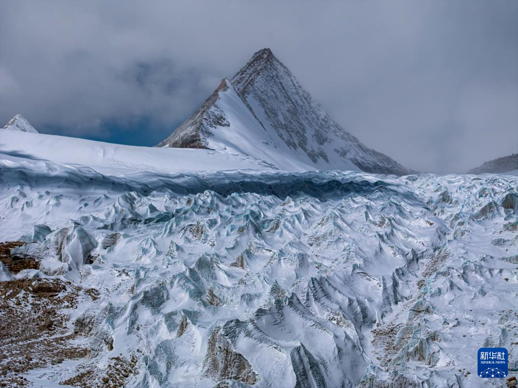 空中俯瞰普拉喜瓊峰及曲隆嘎木冰川(4月13日攝,無人機照片)。新華社發(fā)(董志雄攝)