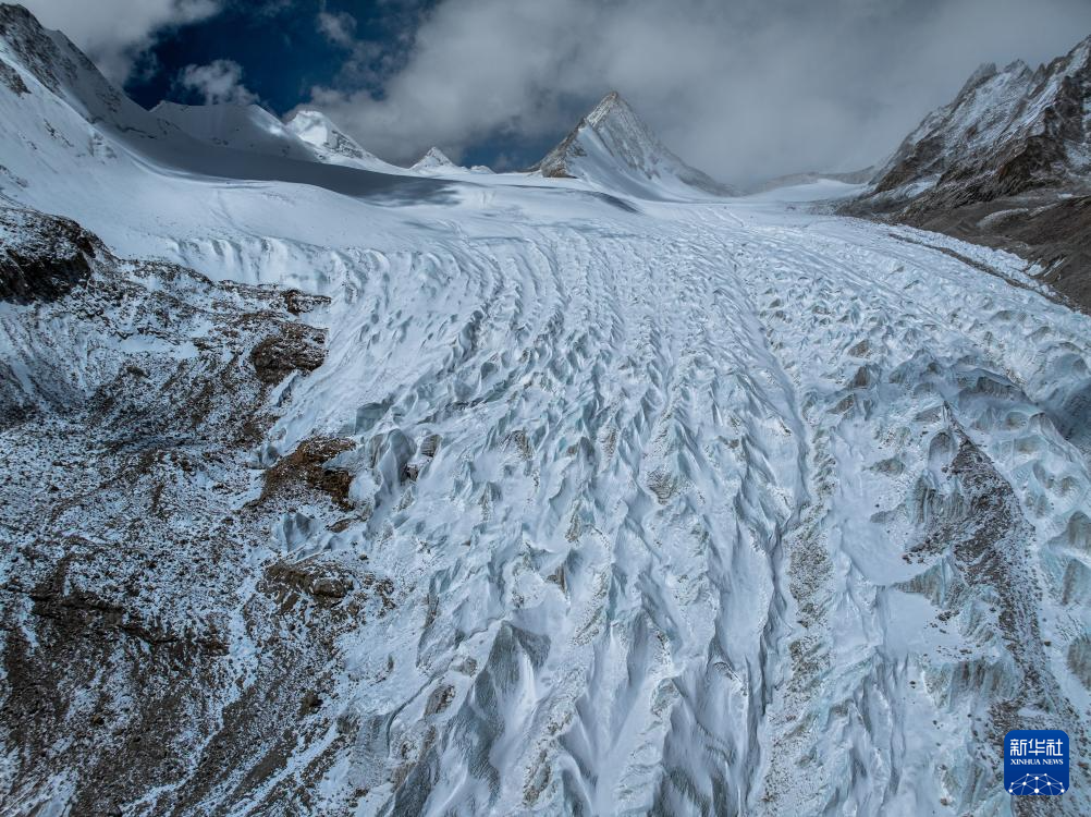 空中俯瞰普拉喜瓊峰腳下的曲隆嘎木冰川(4月13日攝,無人機照片)。新華社發(fā)(董志雄攝)